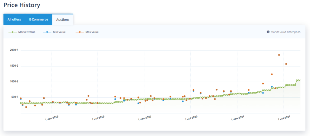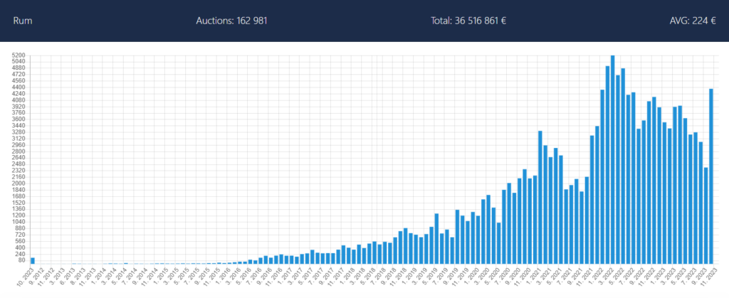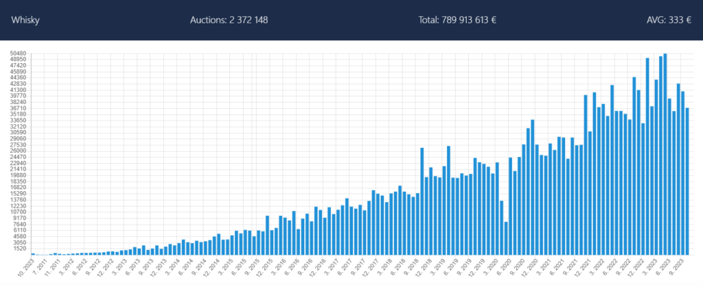Each bottle has a separate price section just for auctions, so you see how the prices at auctions have changed