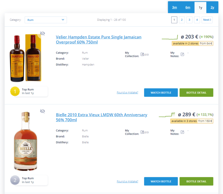 Check out which bottles are hot in the market with our regularly updated TOP 100 list. This easy-to-follow list points out which bottles are on the rise, helping you understand where to invest next and make smart choices that others might overlook.